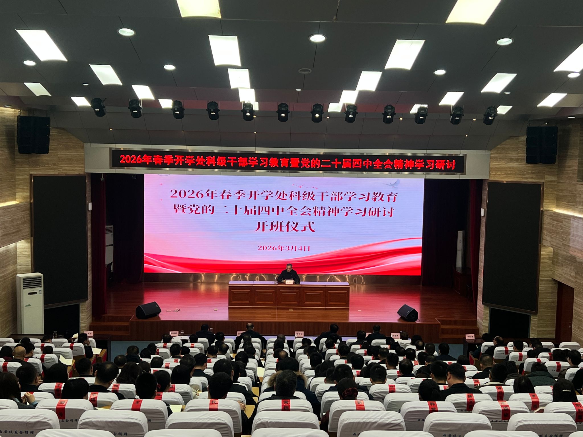3月4日至6日,学校举办春季开学处科级干部学习教育暨党的二十届四中全会精神学习研讨班。党委书记韩明军、校长仲伟周,党委副书记刘瑞明、王勇胜,党委副书记、纪委书记、监察专员康强,副校长祝战斌、胡俊鹏出席开班式和结业式,全体处科级干部参加培训。